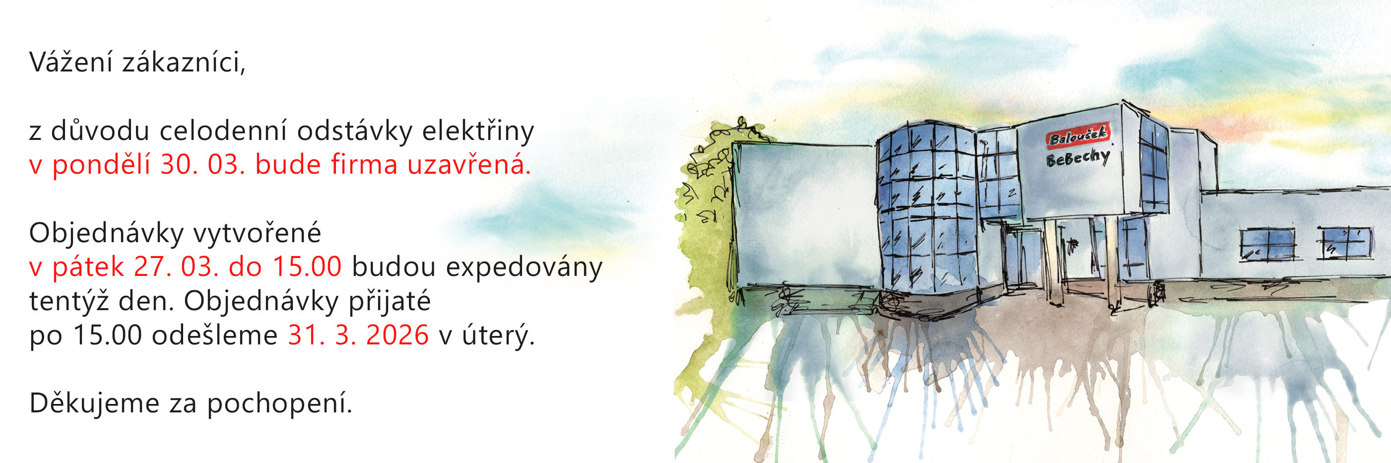 Baloušek, s.r.o., je zárukou kvality, rychlosti dodání a přátelského přístupu zaměstnanců. Jsme seriózní firmou, vyrostlou na rodinných základech, která plní své závazky a dělá vše pro spokojenost zákazníka, který je naším partnerem.