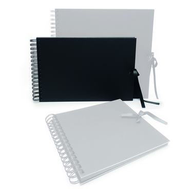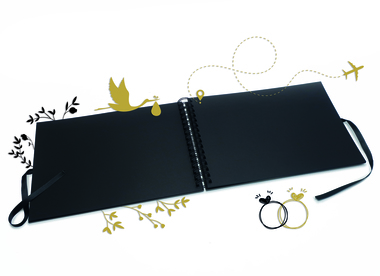 Alba jsou s kroužkovou vazbou pro lepší otáčení stránek a jsou uzavřená stylovou stužkou na mašli.