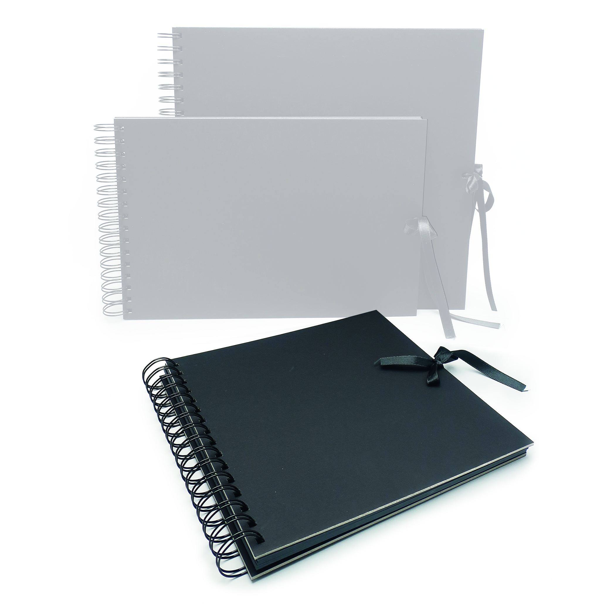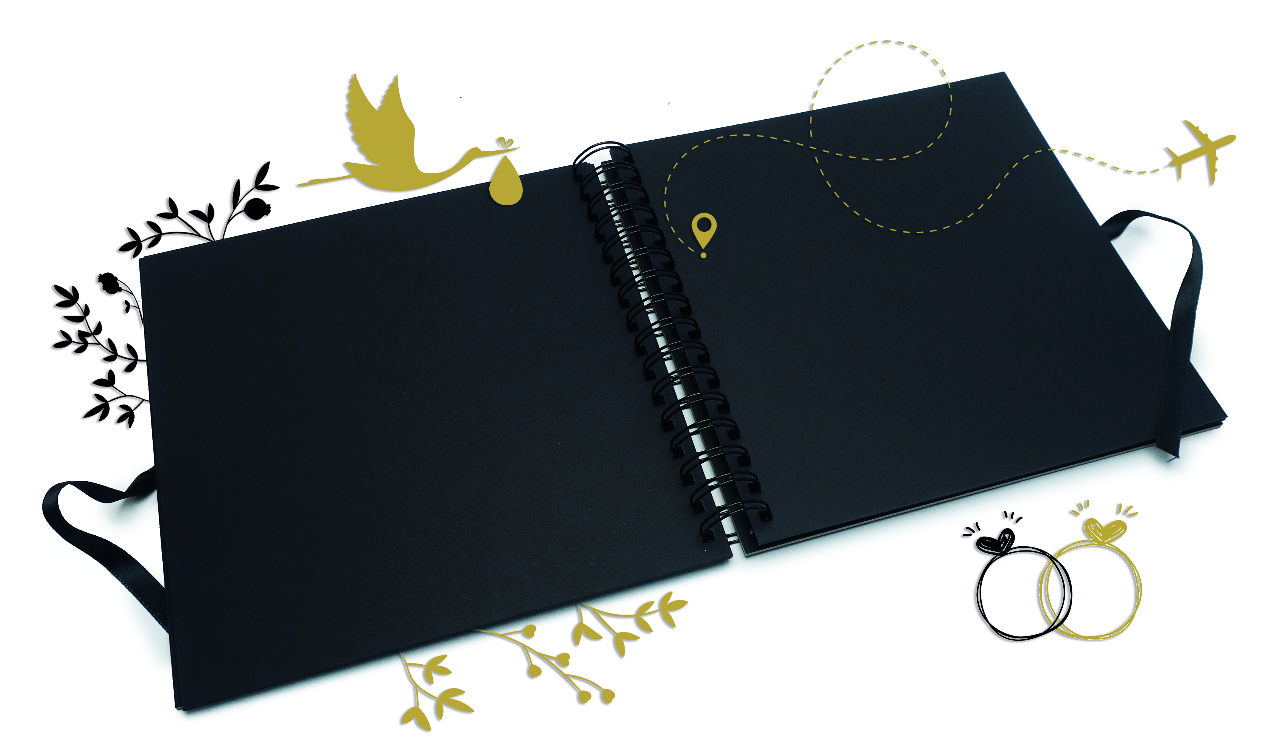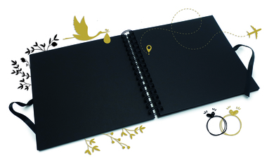 Alba jsou s kroužkovou vazbou pro lepší otáčení stránek a jsou uzavřená stylovou stužkou na mašli.