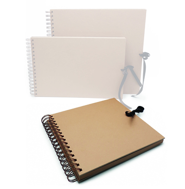 Alba jsou s kroužkovou vazbou pro lepší otáčení stránek a jsou uzavřená stylovou stužkou na mašli.