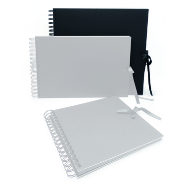 Alba jsou s kroužkovou vazbou pro lepší otáčení stránek a jsou uzavřená stylovou stužkou na mašli.
