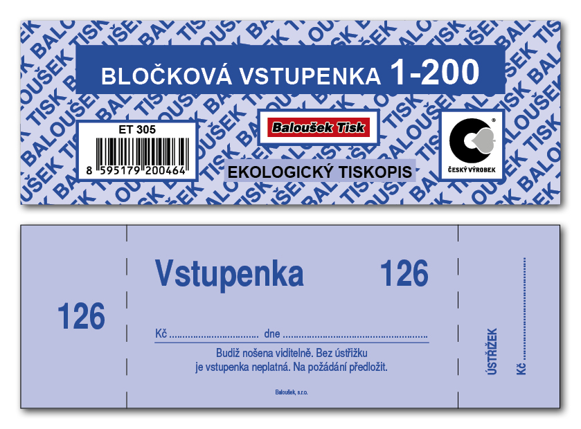 Dotaz na zboží: Bločkové vstupenky 1 - 200 čísel (ET305)
