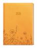 Denní diář v okrové barvě je vyrobený z jemné hladké vivelly s efektní ražbou s motivem Květin. Trendy a praktický doplněk, diář má velký prostor pro poznámky a plánování.