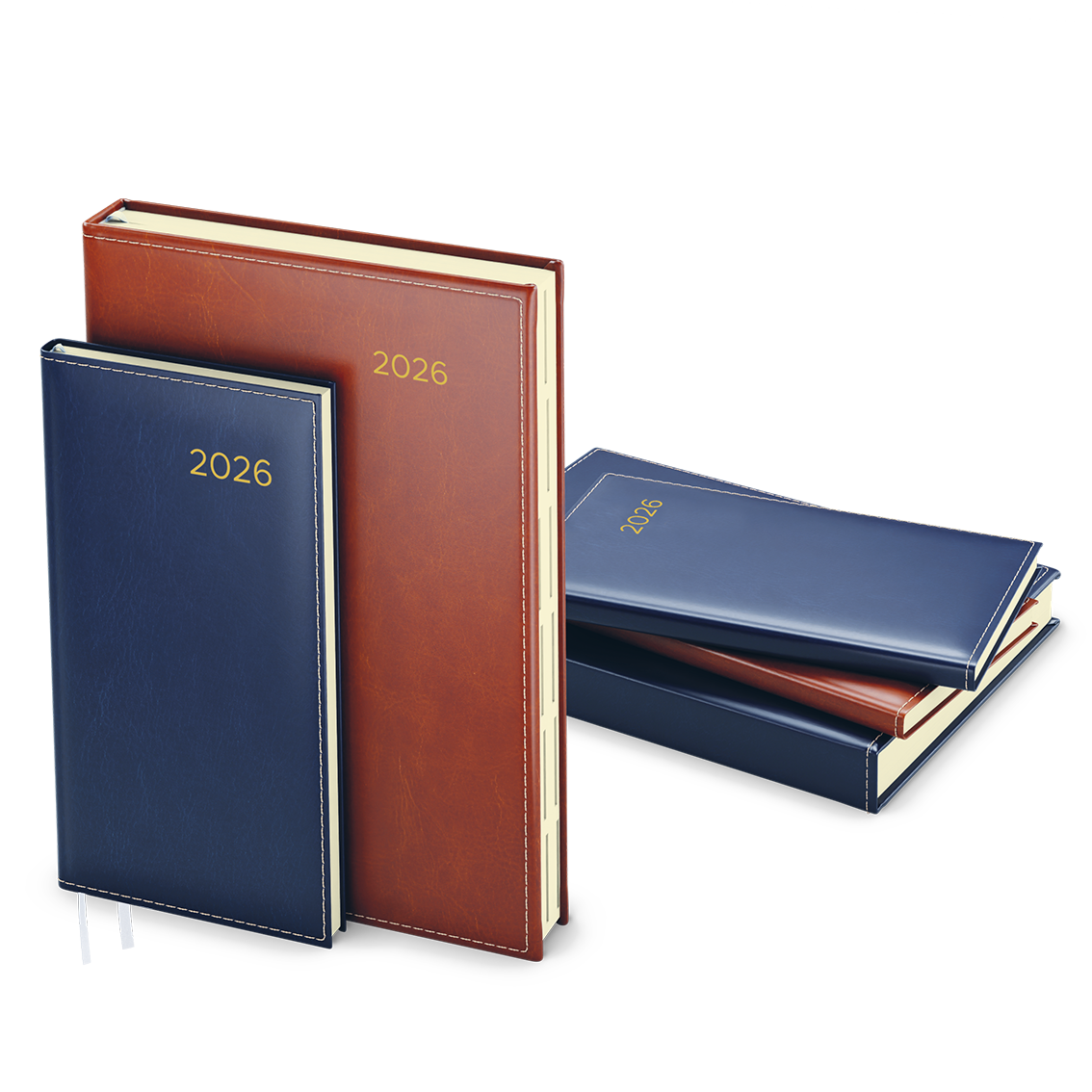 Denní diář A5 vyrobený z modré koženky s moderní zlatou ražbou roku. Diář, který povýší jakoukoli Vaši schůzku. Výjimečností tohoto diáře je, že soboty i neděle jsou na každé stránce zvlášť.