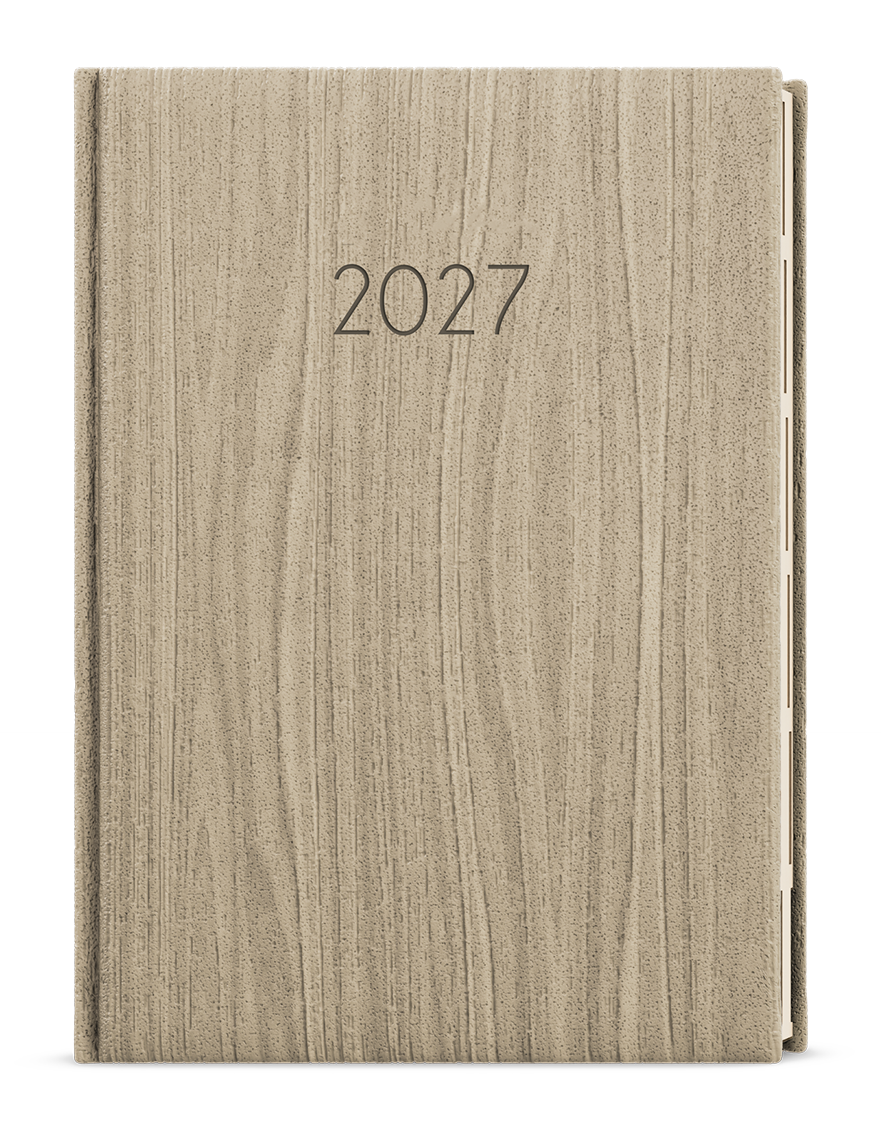 Originální denní diář s přírodním motivem dřeva a ražbou je vyráběný z jemně strukturovaného materiálu s efektním výsekem uvnitř. Má velký prostor pro poznámky a plánování. Výjimečností tohoto diáře je, že soboty i neděle jsou na každé stránce zvlášť.
