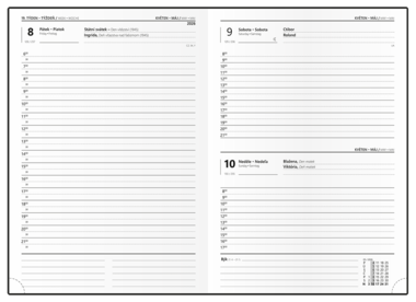Denní diář formátu A5 je vyráběný z matného hladkého lamina s parciálním lakem, který dodává každému diáři šmrnc. Jedná se nejen o skvělý doplněk, ale také si budete moci efektivněji plánovat Váš čas.