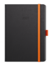 Neobyčejný denní diář s matným povrchem ze strukturovaného materiálu s oranžovou gumičkou a poutkem. Je vyráběný ve formátu A5, má velký prostor pro poznámky a plánování.