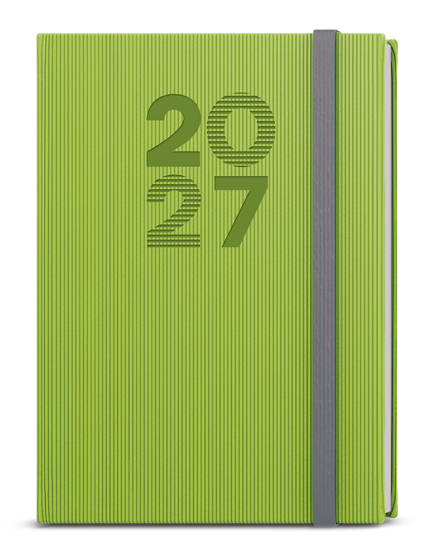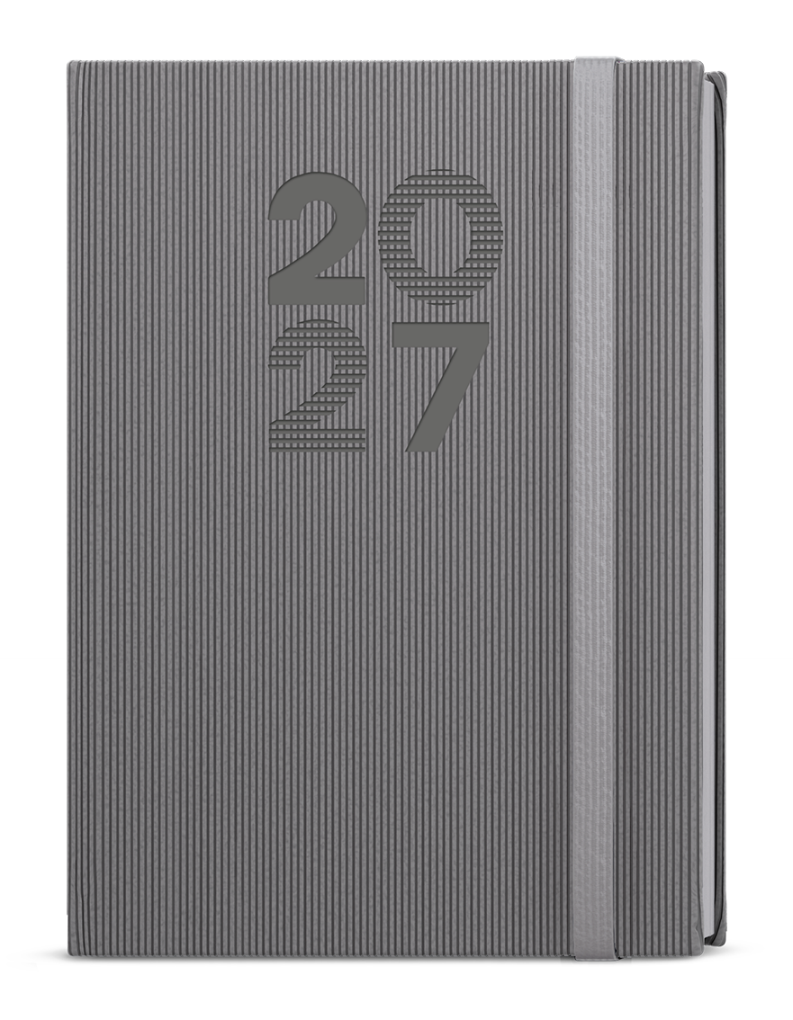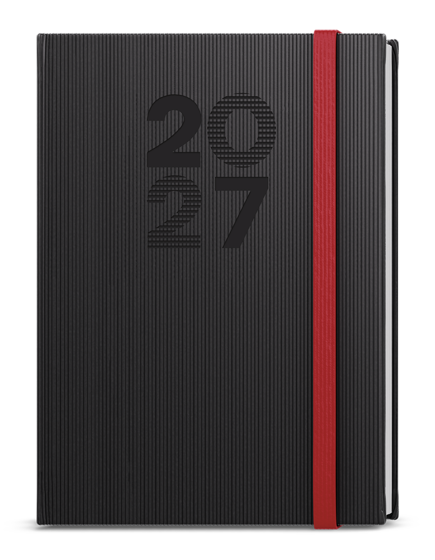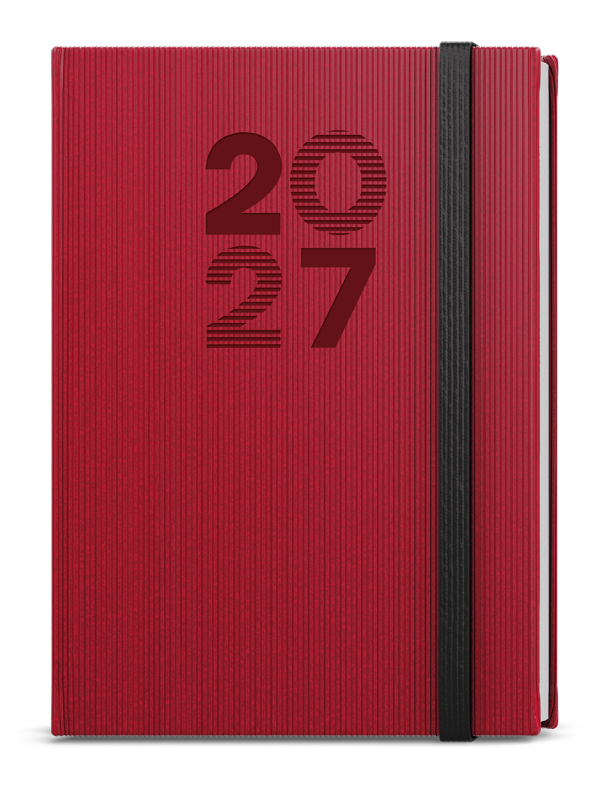 Denní diář formátu A5 vyrobený ze strukturovaného materiálu v oblíbených barvách a s gumičkou. Oblíbená grafika vnitřního bloku Vám pomůže účelně plánovat Vaše dny.