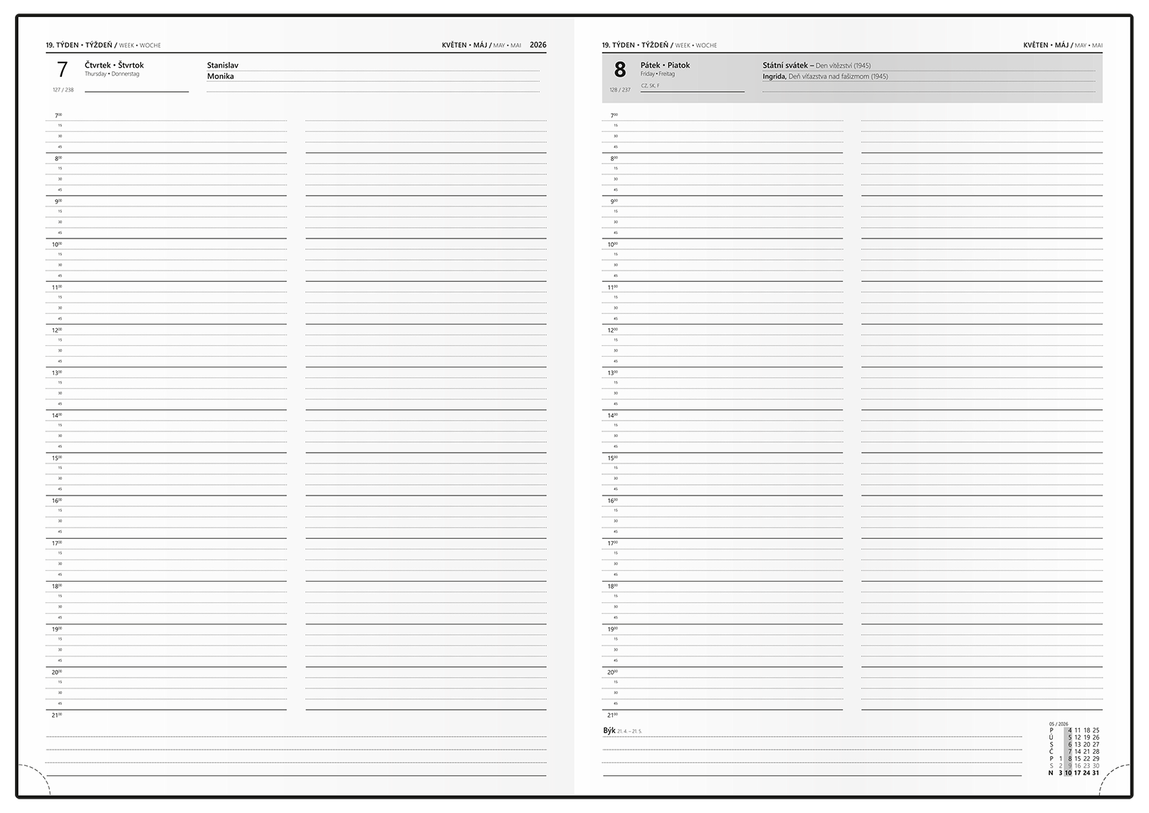 Denní diář ve formátu A4 v oblíbeném hladkém materiálu vivella. Díky velkému formátu Vám diář poskytne velký prostor pro každodenní plánování.