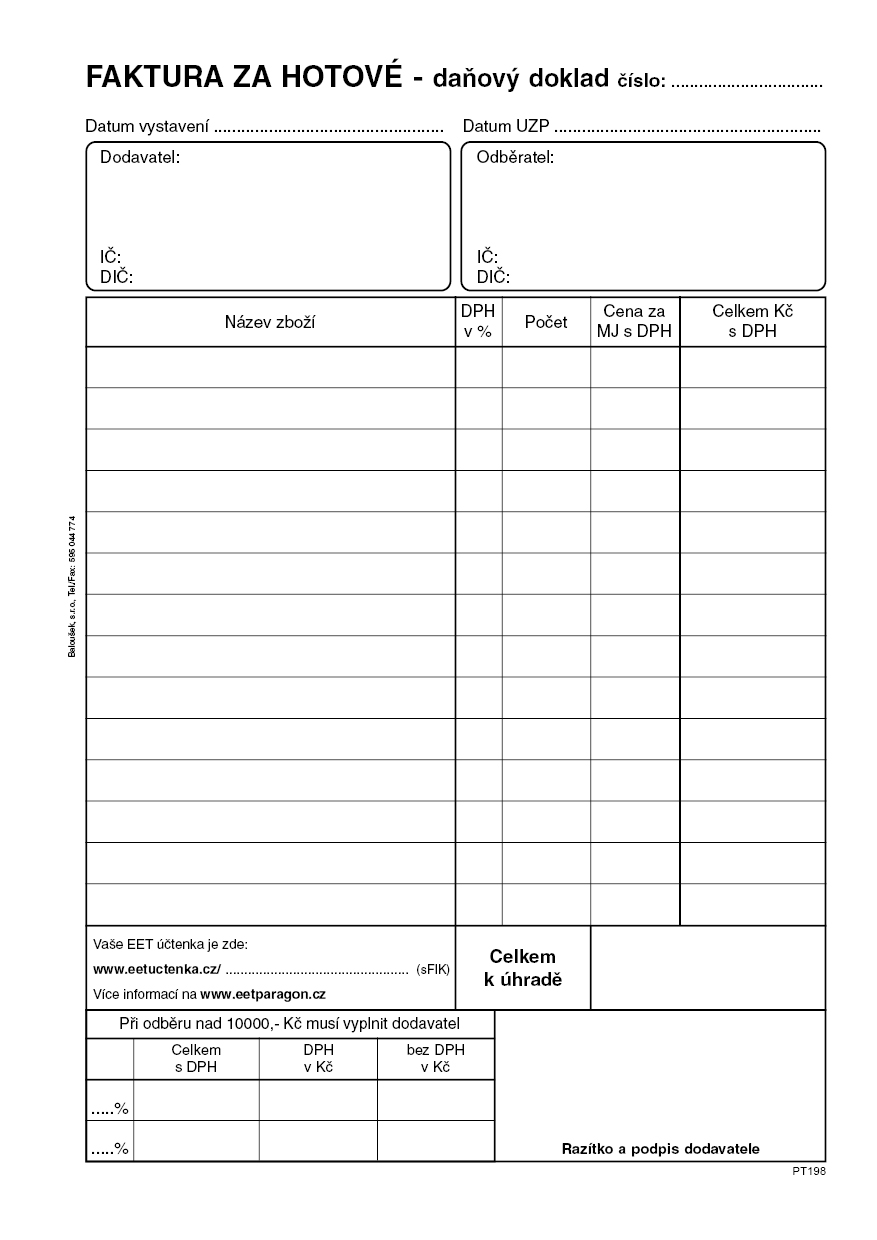 Dotaz na zboží: Faktura za hotové-daňový dok.A5 - EET (PT198)
