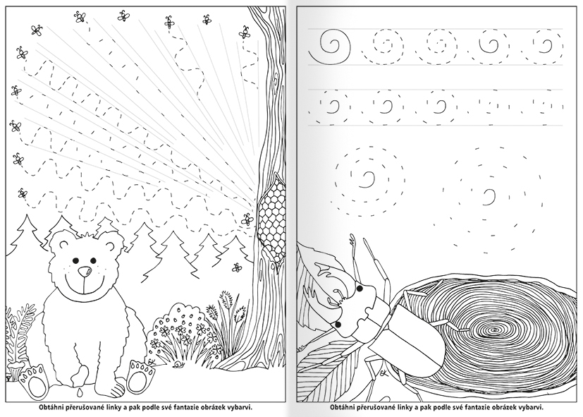 Pracovní listy A4 k procvičení grafomotoriky dětí v předškolním věku. Zajímavé ilustrace doprovodí děti v psaní čar svislých, vodorovných, vlnovek nebo elips. Obrázek lze následně vymalovat. Grafomotorická cvičení jsou určená především pro děti v předškolním věku, kdy se zábavnou formou učí úchop tužky a koordinaci oka a ruky.