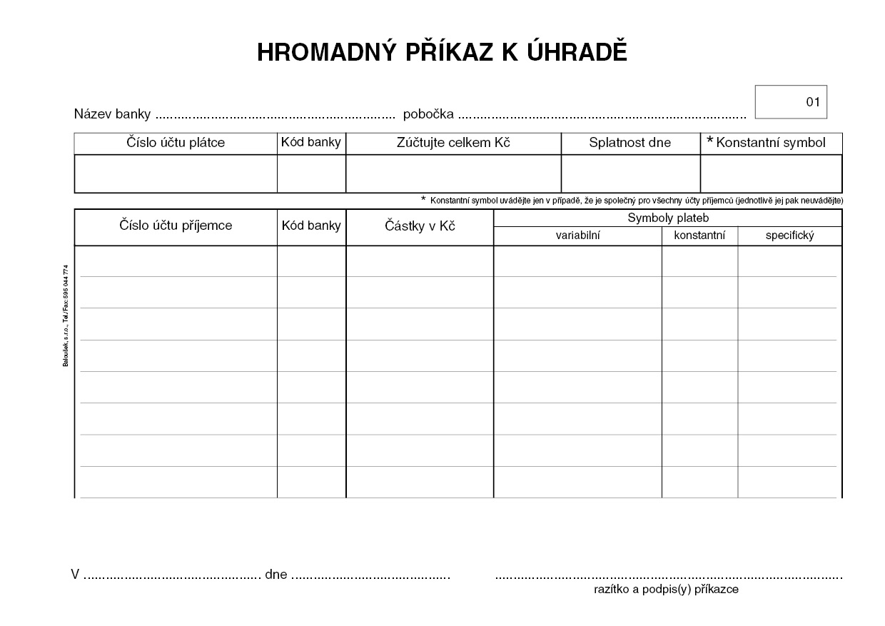 Dotaz na zboží: Hromadný příkaz k úhradě A5 (PT100)