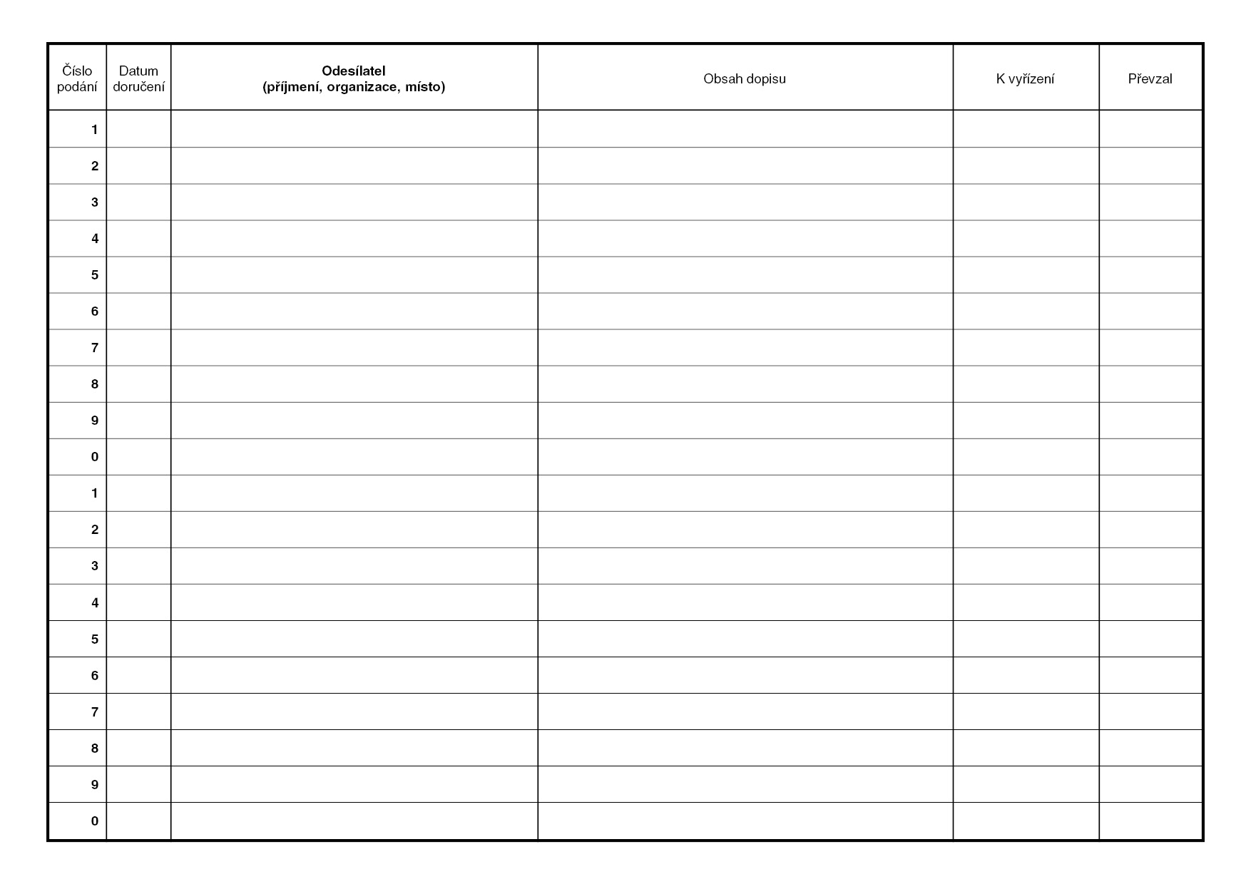 Kniha přijaté pošty A4 /oboustr./