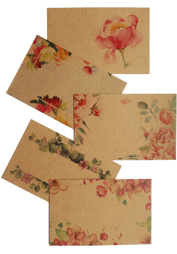 Sada malých děkovacích kartiček s autorským obrázkem a volným polem pro možnost dopsání libovolného textu.