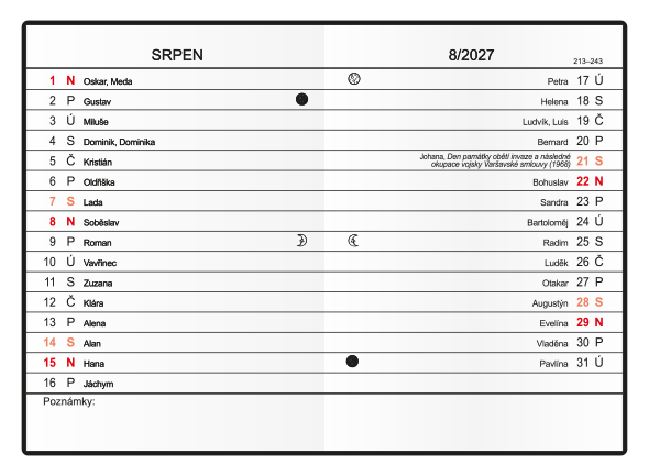 jemný hladký materiál PVC, potisk roku bílou barvou, šitá vazba V1 // ofset, 70g/m2