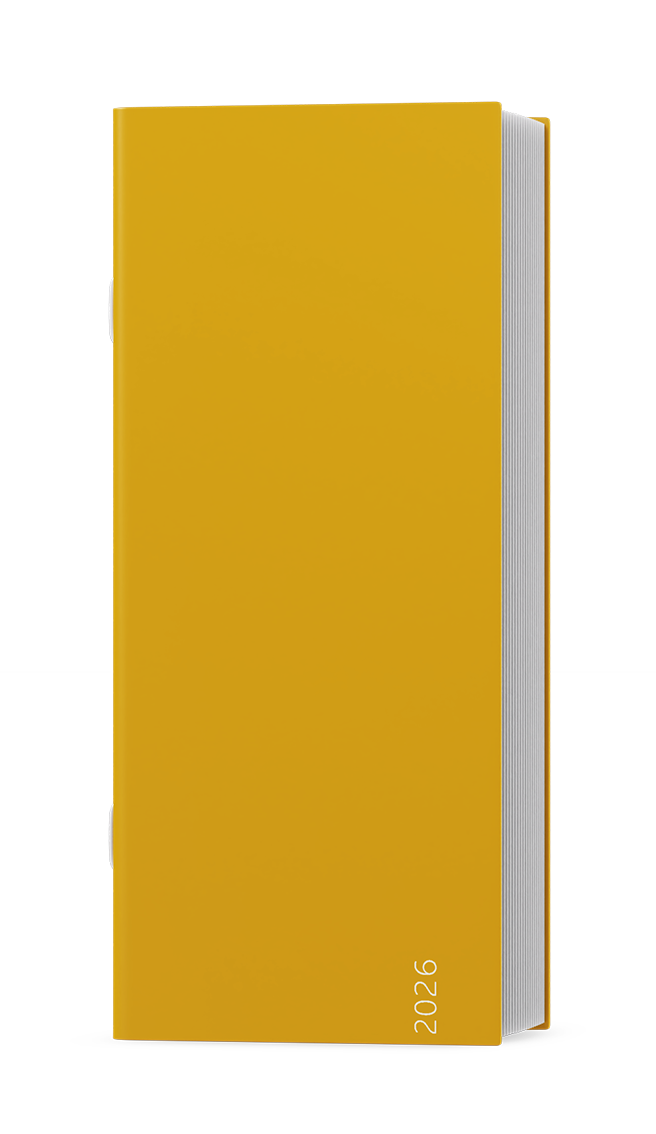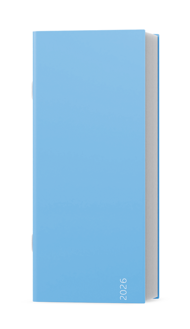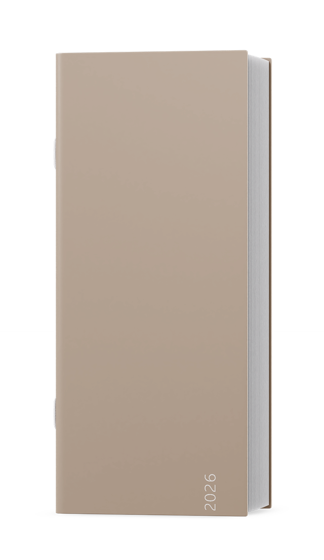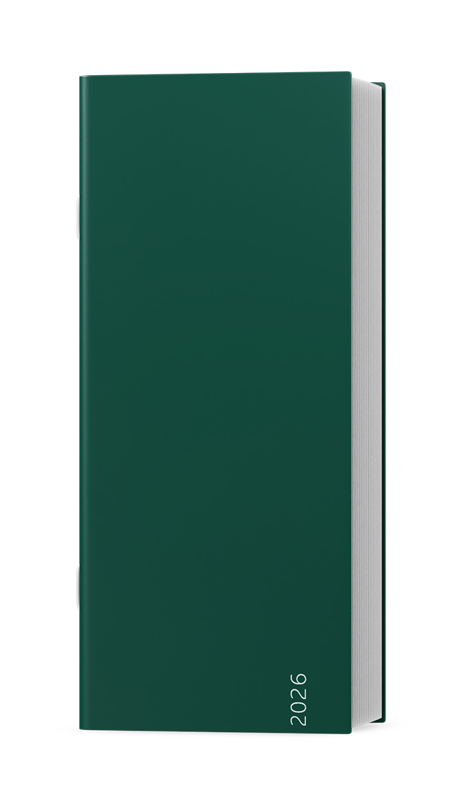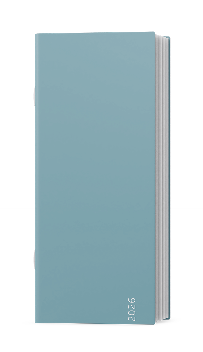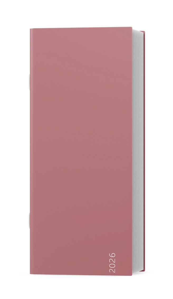 Jednoduchý a praktický měsíční diář z jemného matného materiálu v moderní barvě. Ideální pro každého, kdo si oblíbil měkkou šitou vazbu.