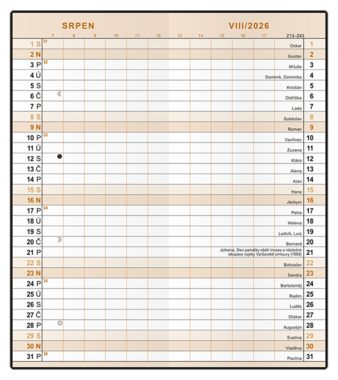 jemný hladký materiál PVC, potisk roku bílou barvou, šitá vazba V1, ofset, 70g/m2