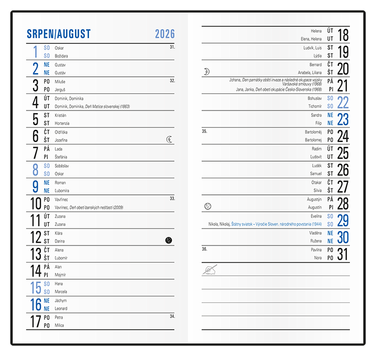 jemný hladký materiál PVC,potisk roku bílou barvou, šitá vazba V1, ofset, 70g/m2