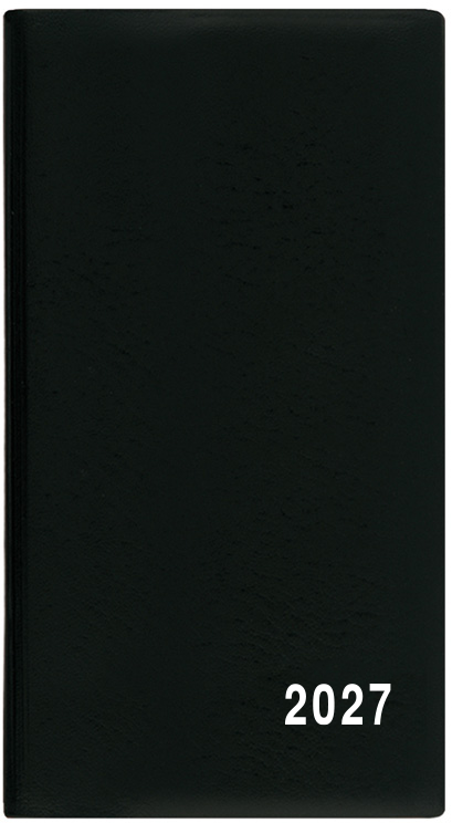Jednoduchý a praktický měsíční diář vyrobený z jemného hladkého materiálu s polomatným povrchem černé barvy. Ideální pro každého, kdo si oblíbil měkkou šitou vazbu.