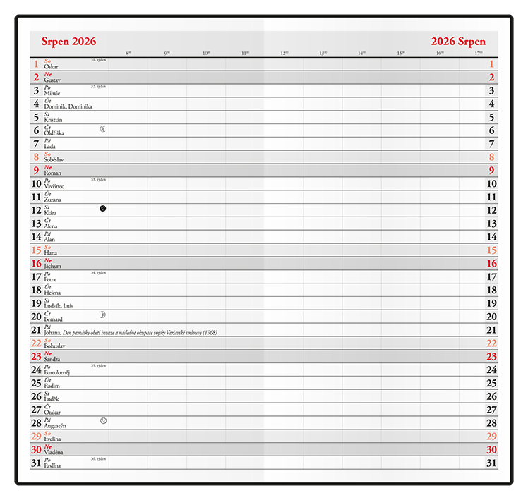 jemný hladký materiál PVC,potisk roku bílou barvou, šitá vazba V1, ofset, 70g/m2