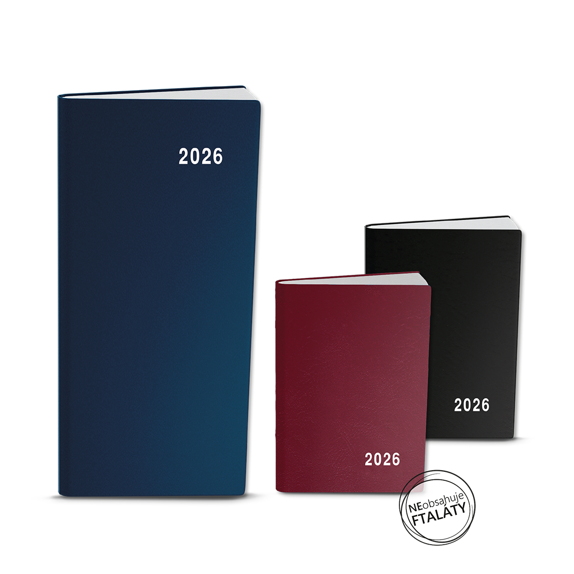 jemný hladký materiál PVC,potisk roku bílou barvou, šitá vazba V1, ofset, 70g/m2