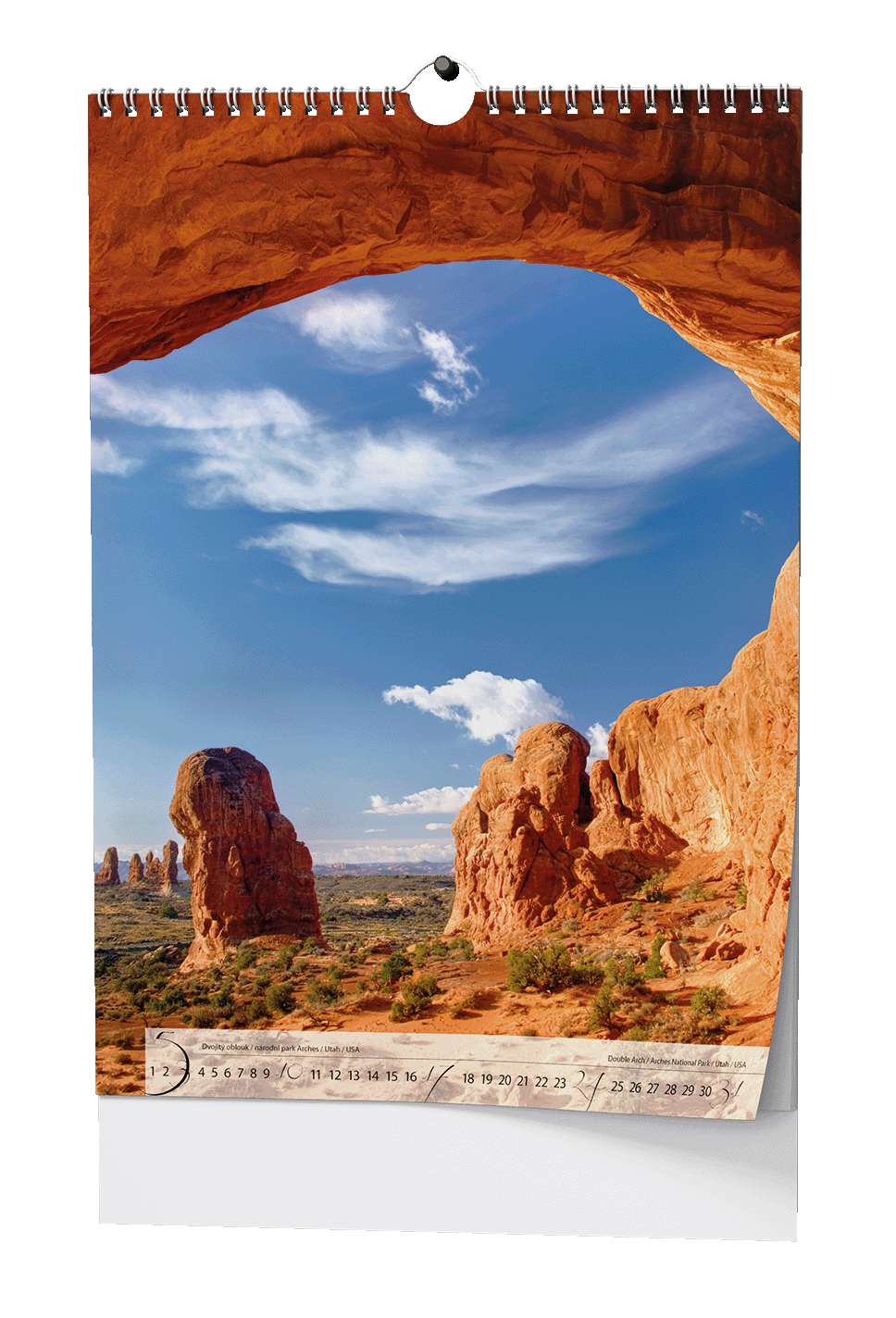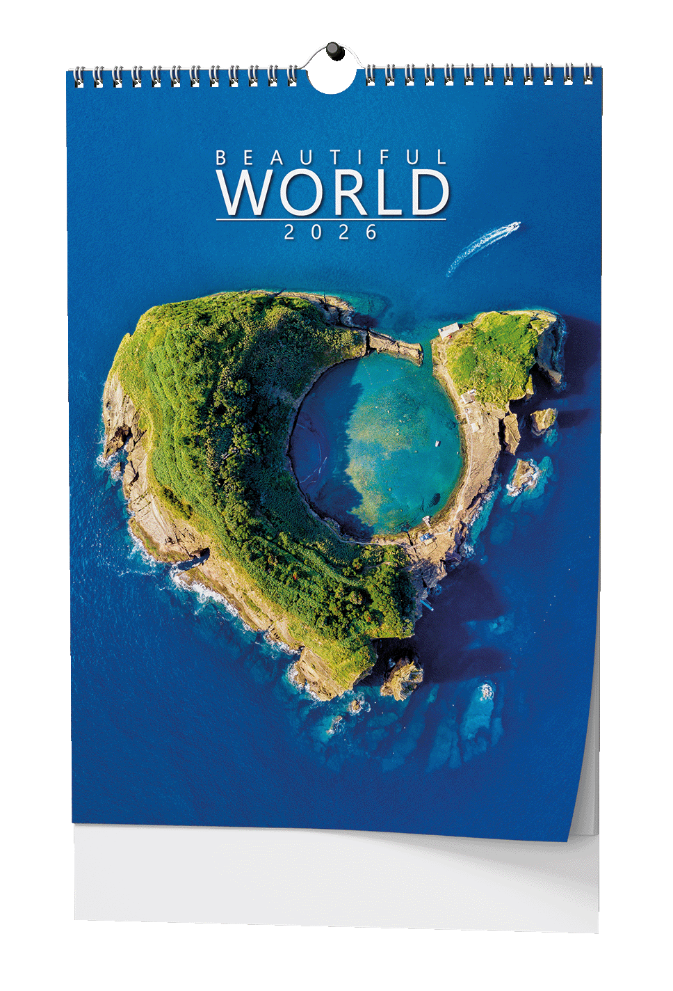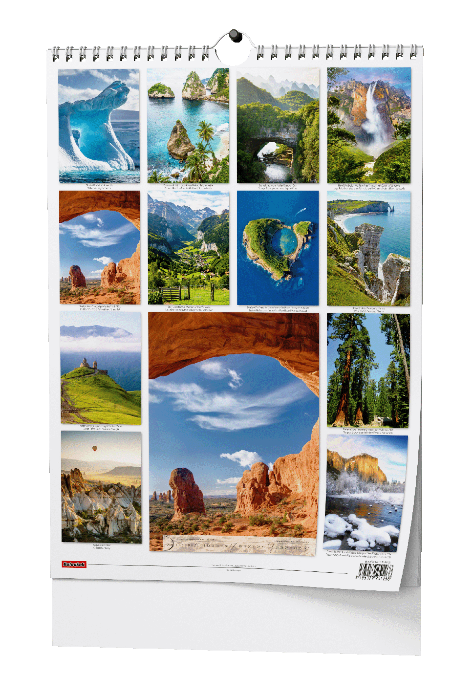 Nástěnný kalendář s obrázky nejkrásnějších míst na světě.