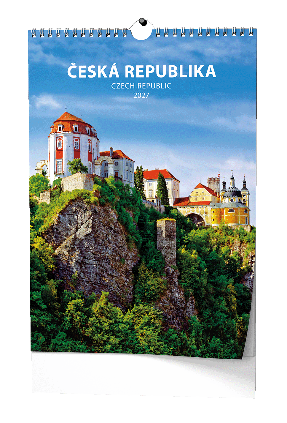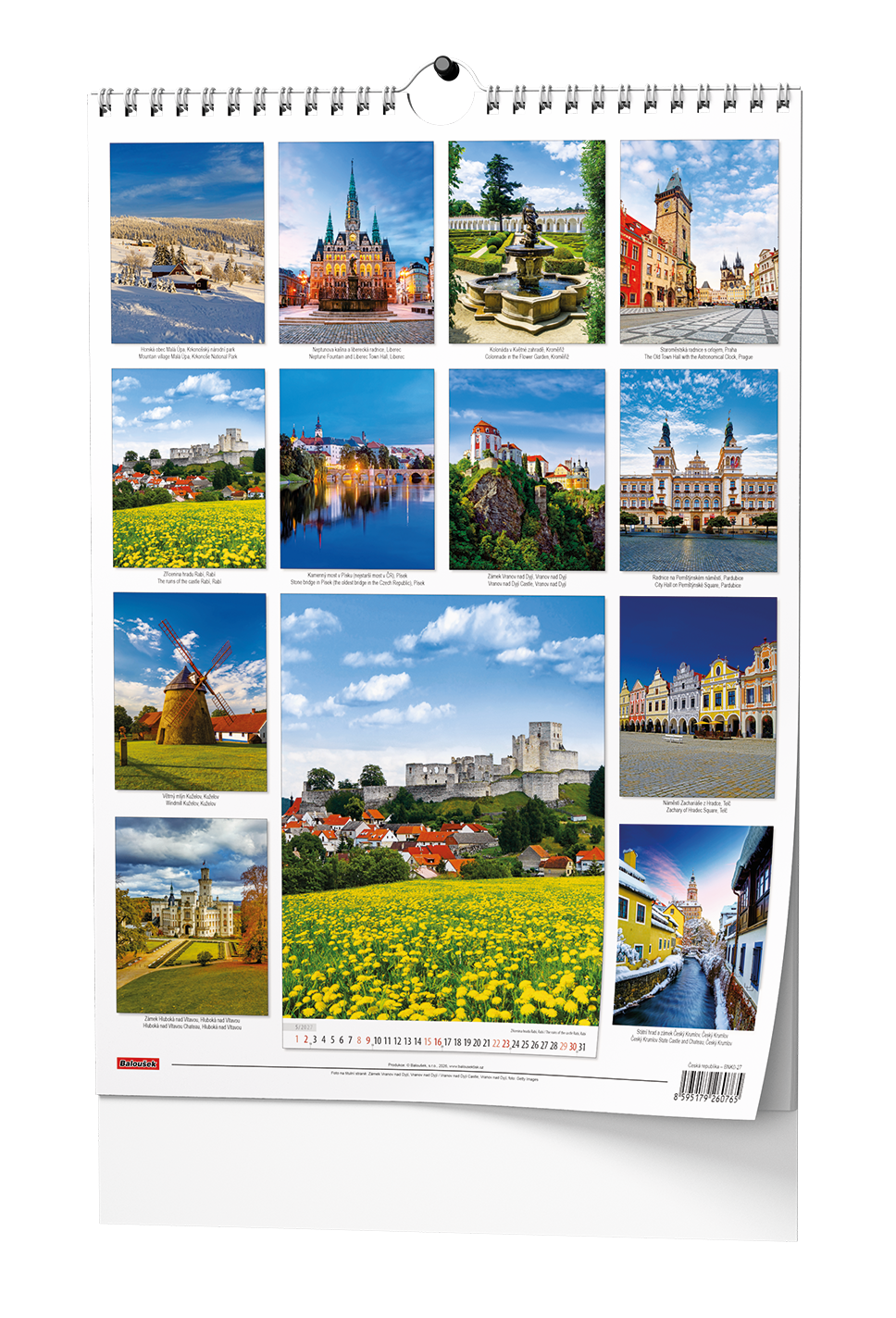 Nástěnný kalendář s obrázky známých míst v České republice.