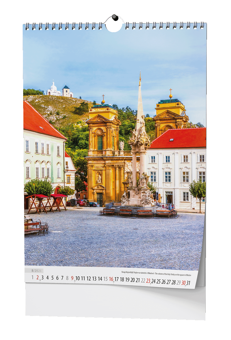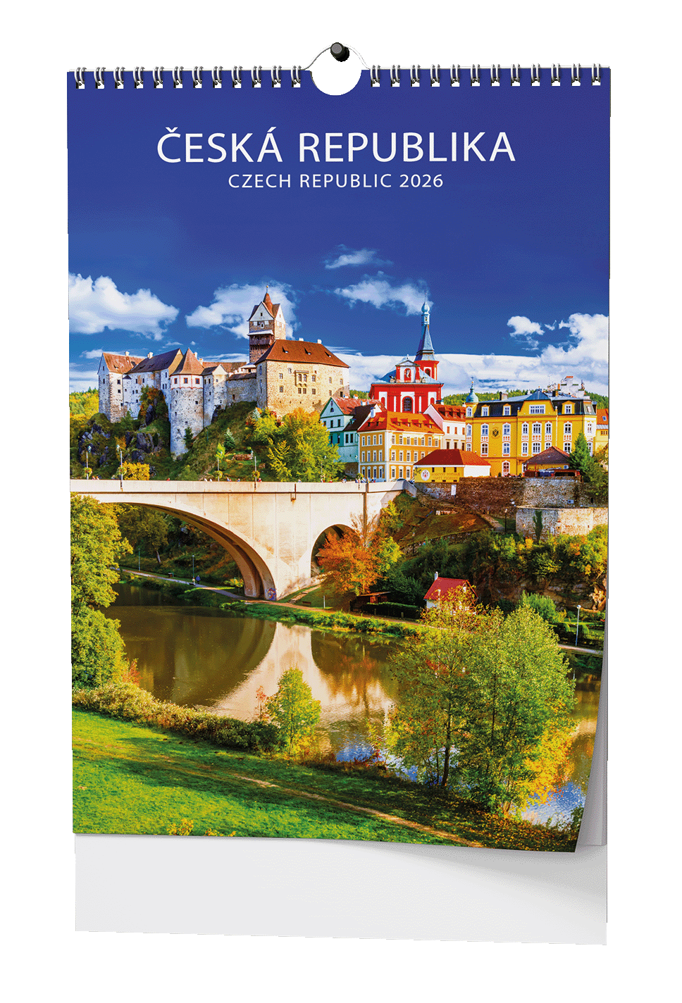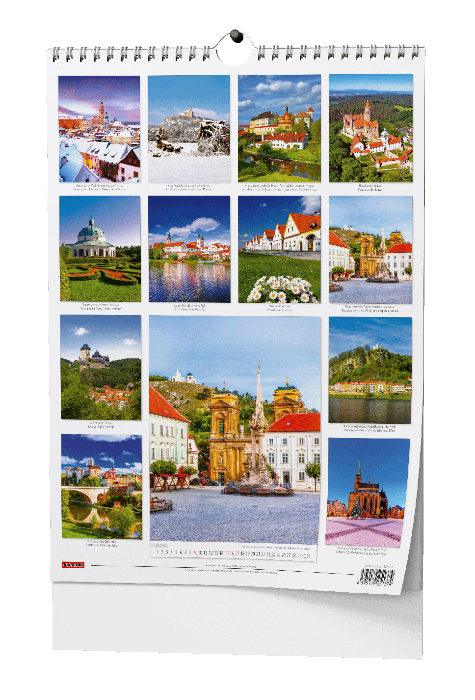 Nástěnný kalendář s obrázky známých míst v České republice.