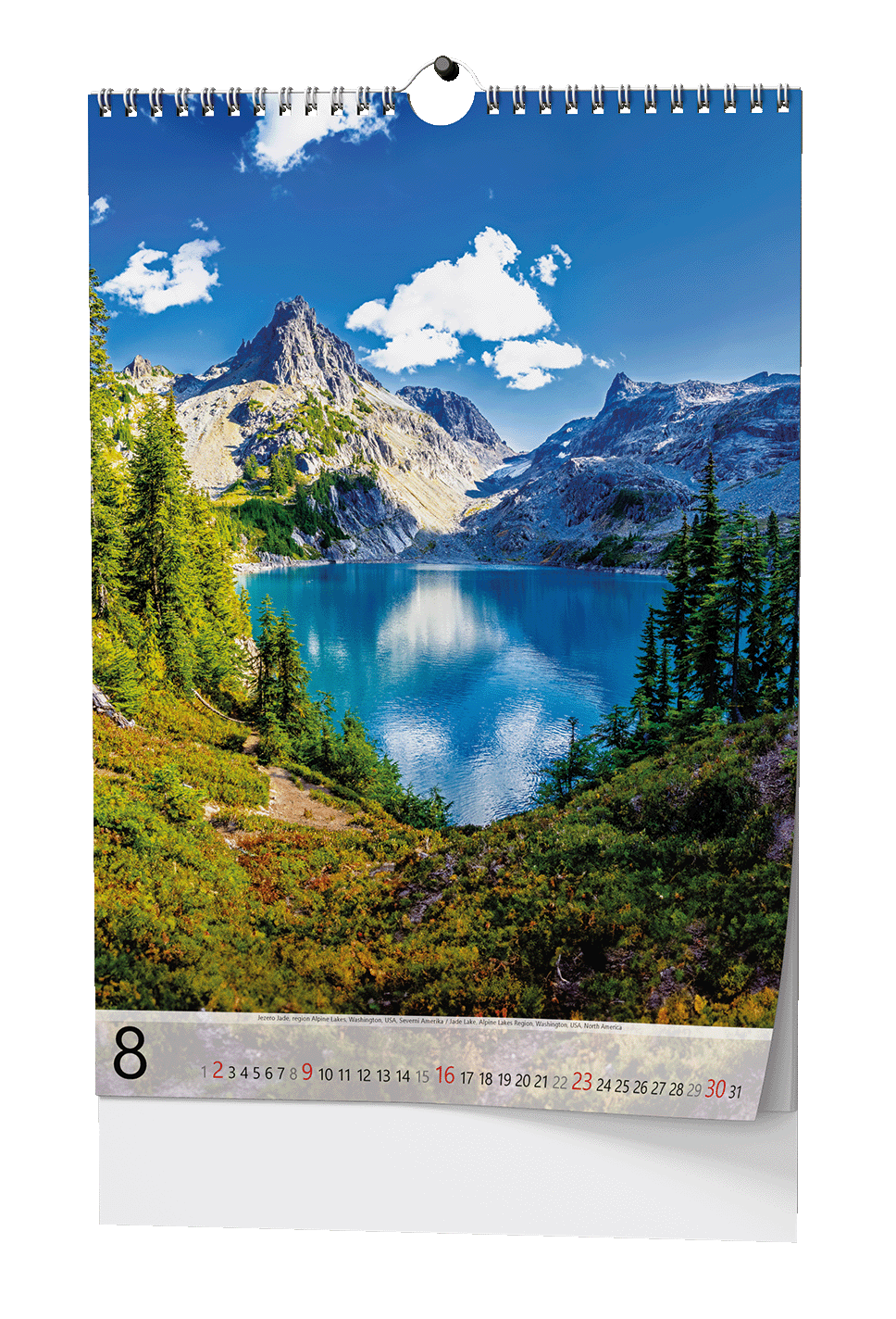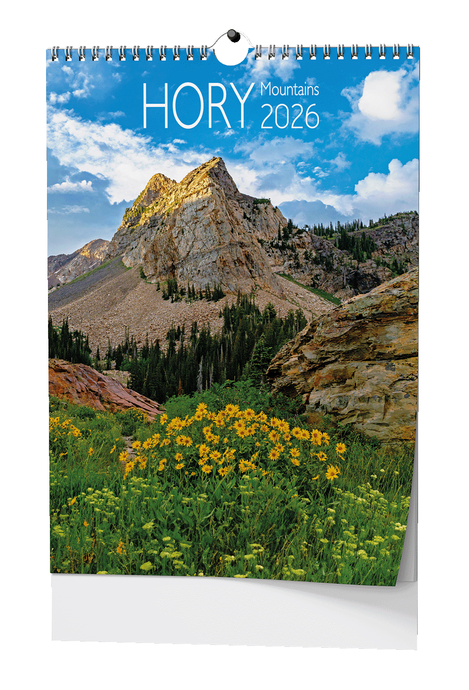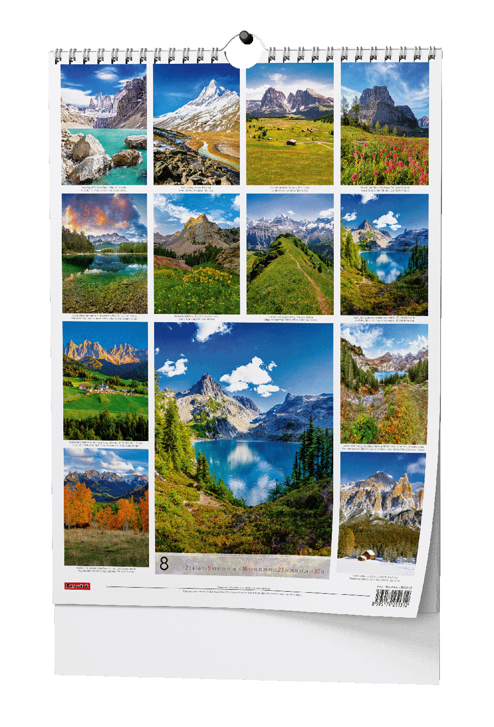 Nástěnný kalendář s obrázky známých hor z celého světa.