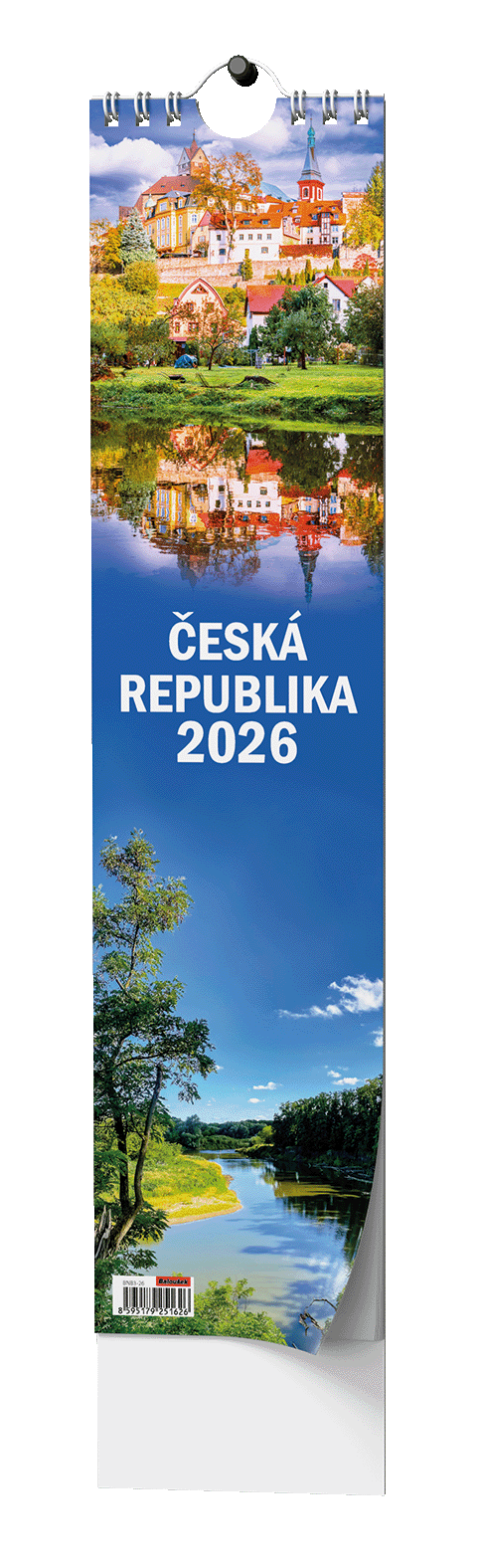Netradiční nástěnný kalendář ve formátu kravaty s působivými obrázky České republiky.
