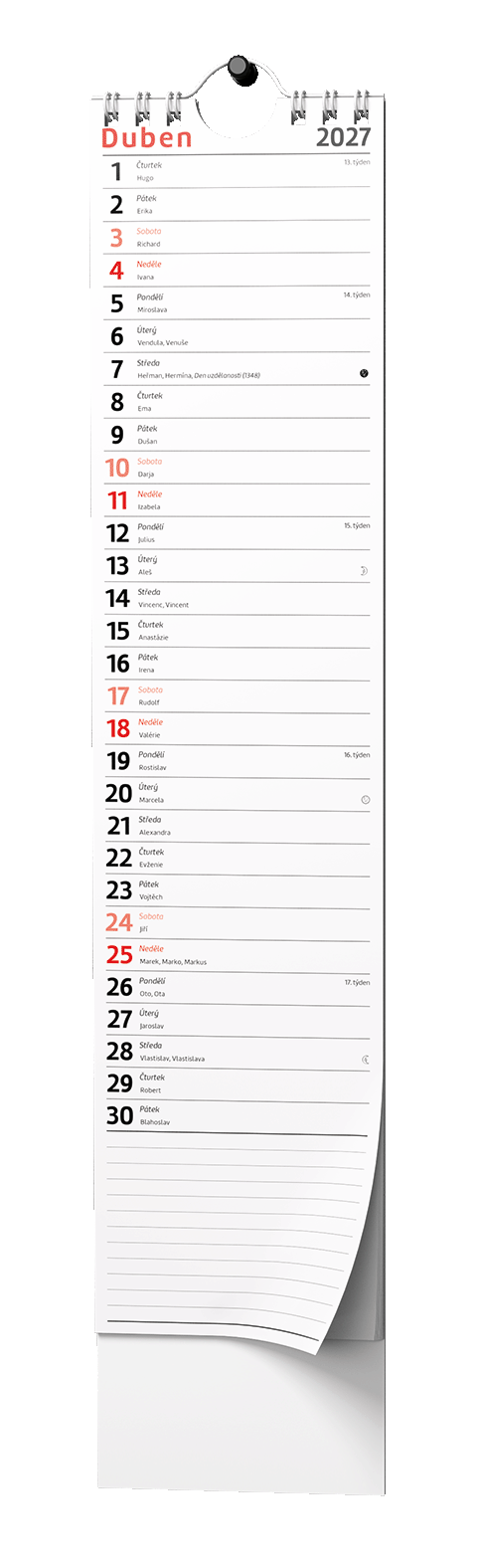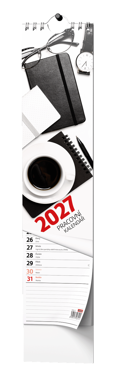 Pracovní nástěnný bez obrázkový kalendář ve formátu kravaty.