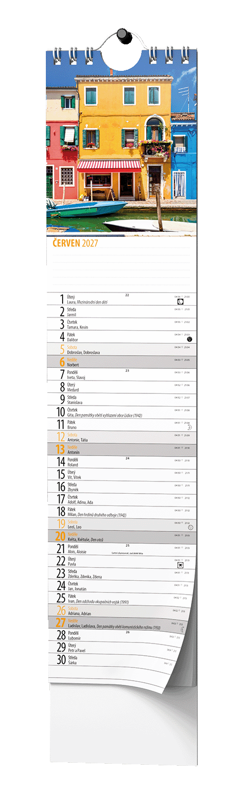 kovová spirála "twin wire", háček pro zavěšení, lakovaná obálka je tištěna na křídový papír s gramáží 150 g/m2, spodní karton je z kvalitní bílé lepenky v gramáži 450 g/m2 // křída lesk, 135 g/m2