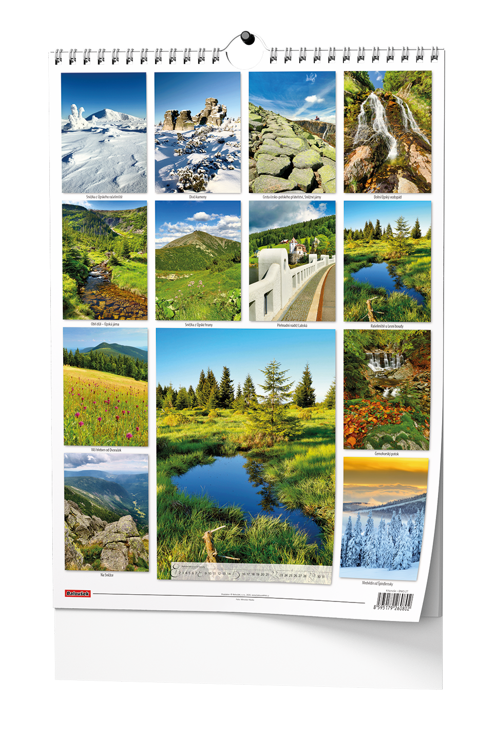 Nástěnný kalendář s obrázky Krkonoš.