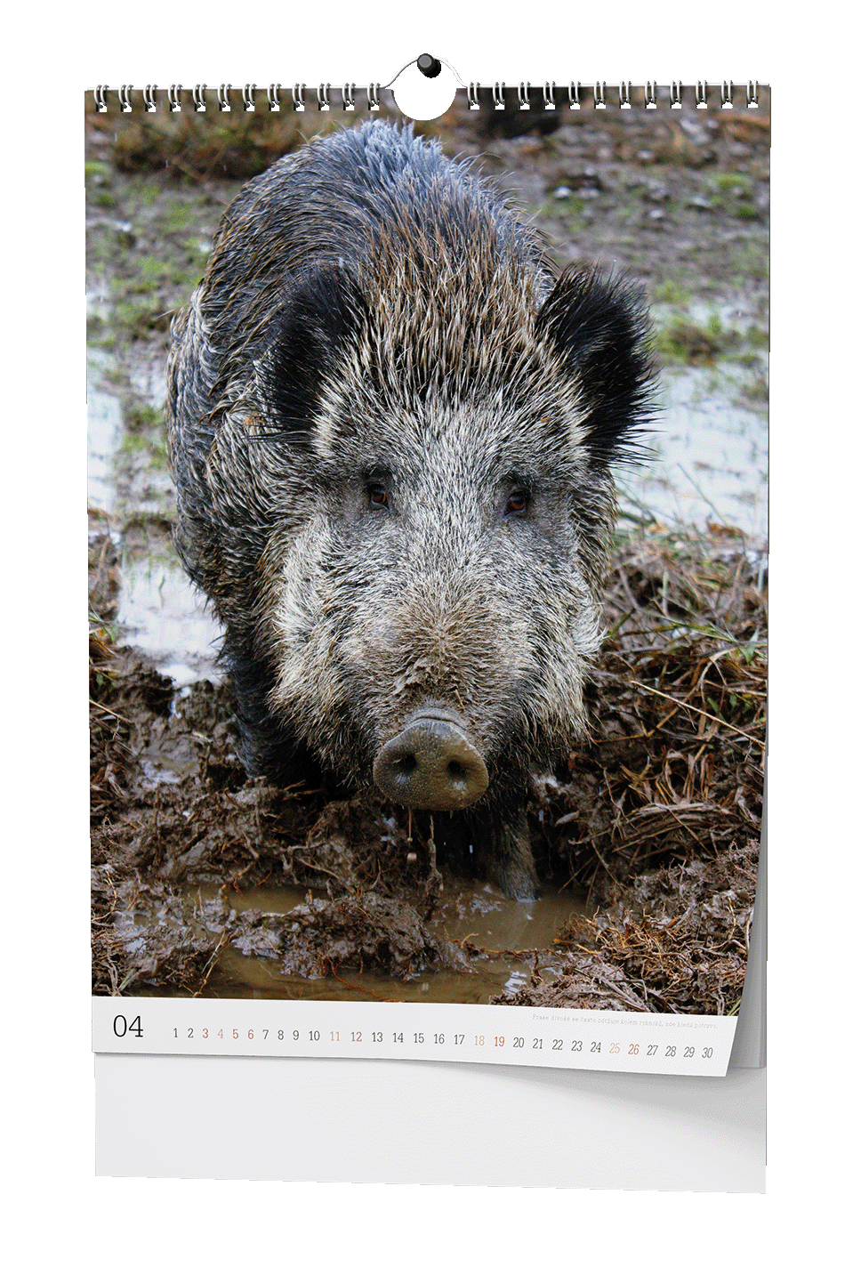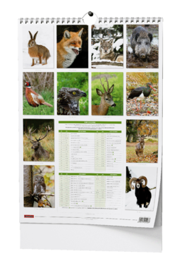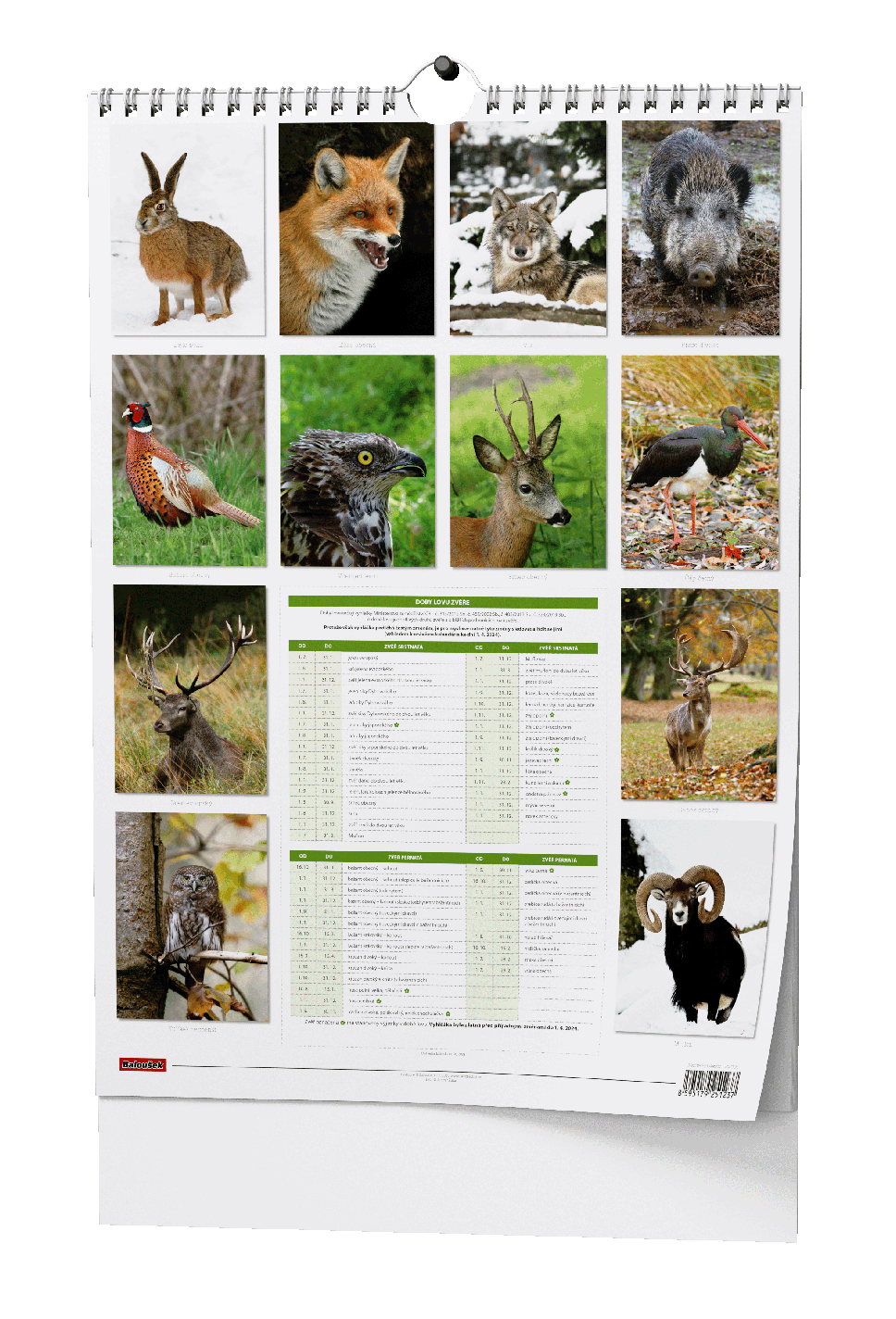Nástěnný kalendář pro vášnivé myslivce s informacemi o době lovu zvěře.