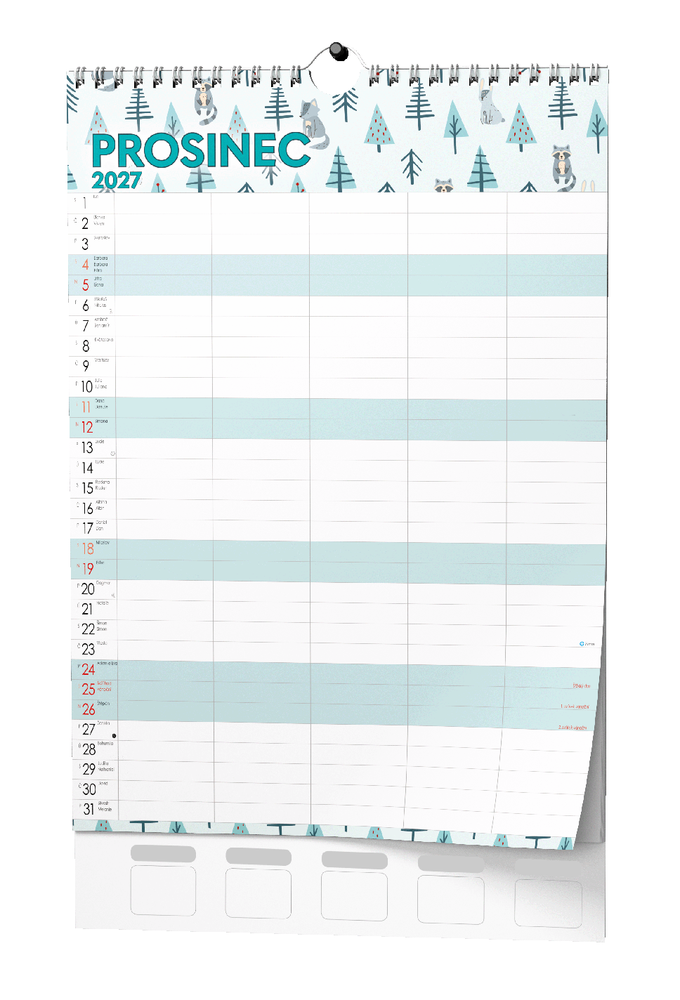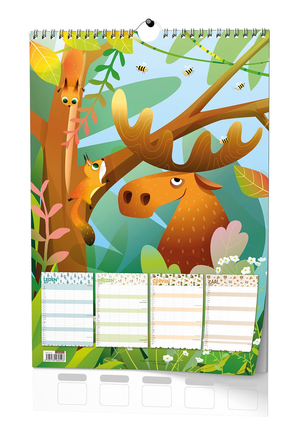 Přehledný nástěnný kalendář pro to správné rodinné plánování. Na zadním kartonu prostor na zapsání jmen jednotlivých členů rodiny (nemusíte přepisovat jména na každý měsíc) a velký prostor na poznámky.