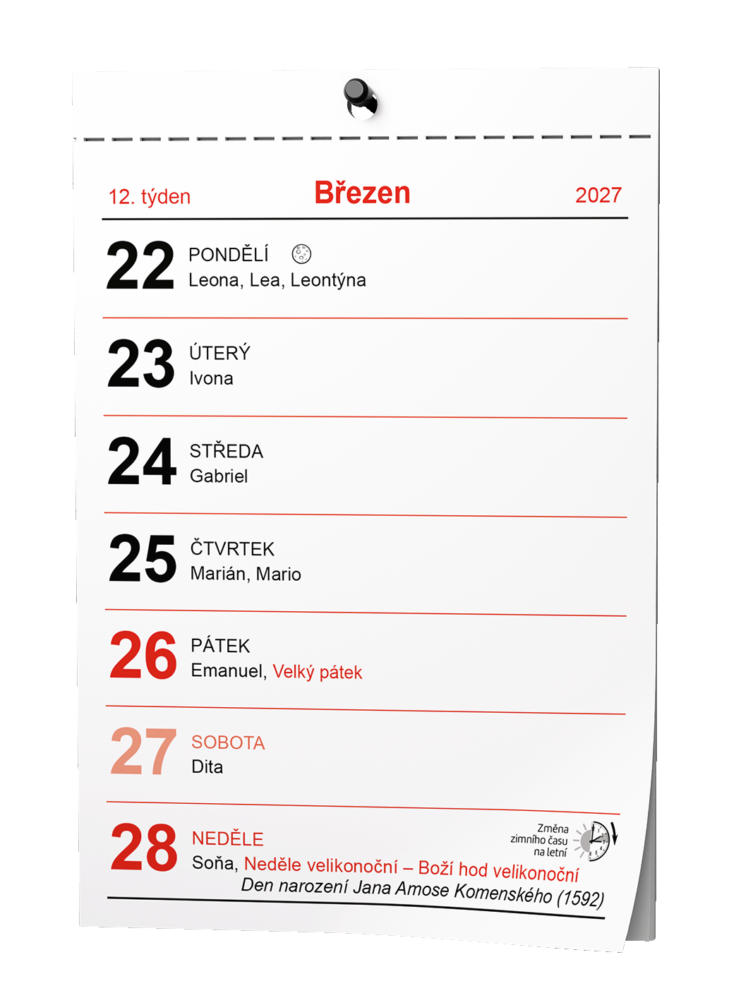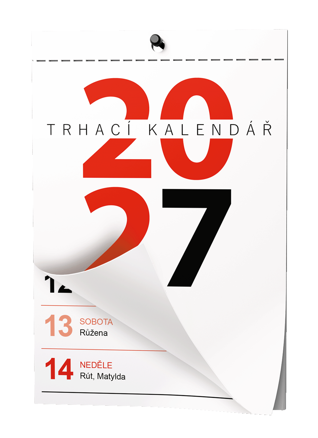 Trhací nástěnný kalendář s týdenním kalendáriem a většími písmeny a čísly ve formátu A6.