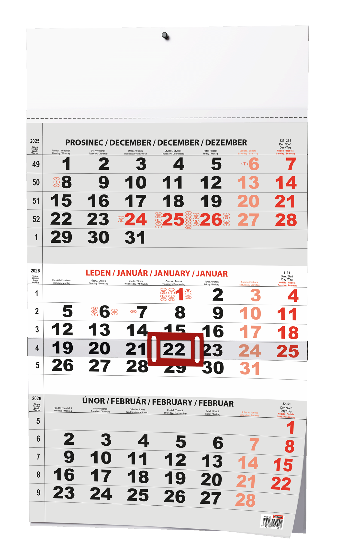 Praktický nástěnný kalendář s tříměsíčním kalendáriem a posuvným jezdcem vhodný do Vaší kanceláře.