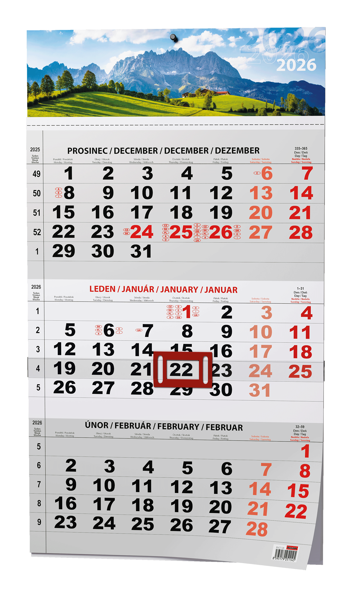 Praktický nástěnný kalendář s tříměsíčním kalendáriem s barevnou laší s motivem přírody a s posuvným jezdcem vhodný do Vaší kanceláře.
