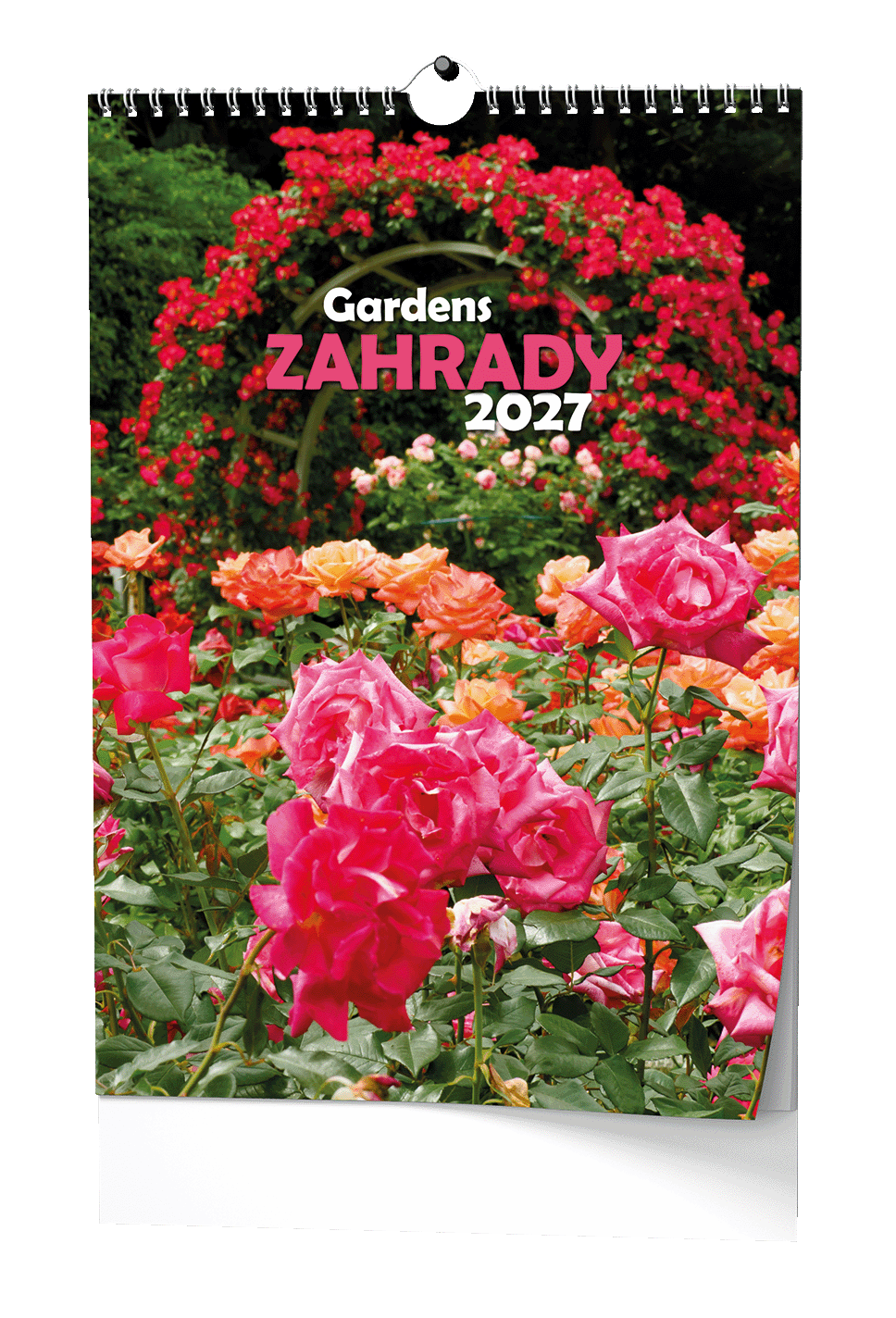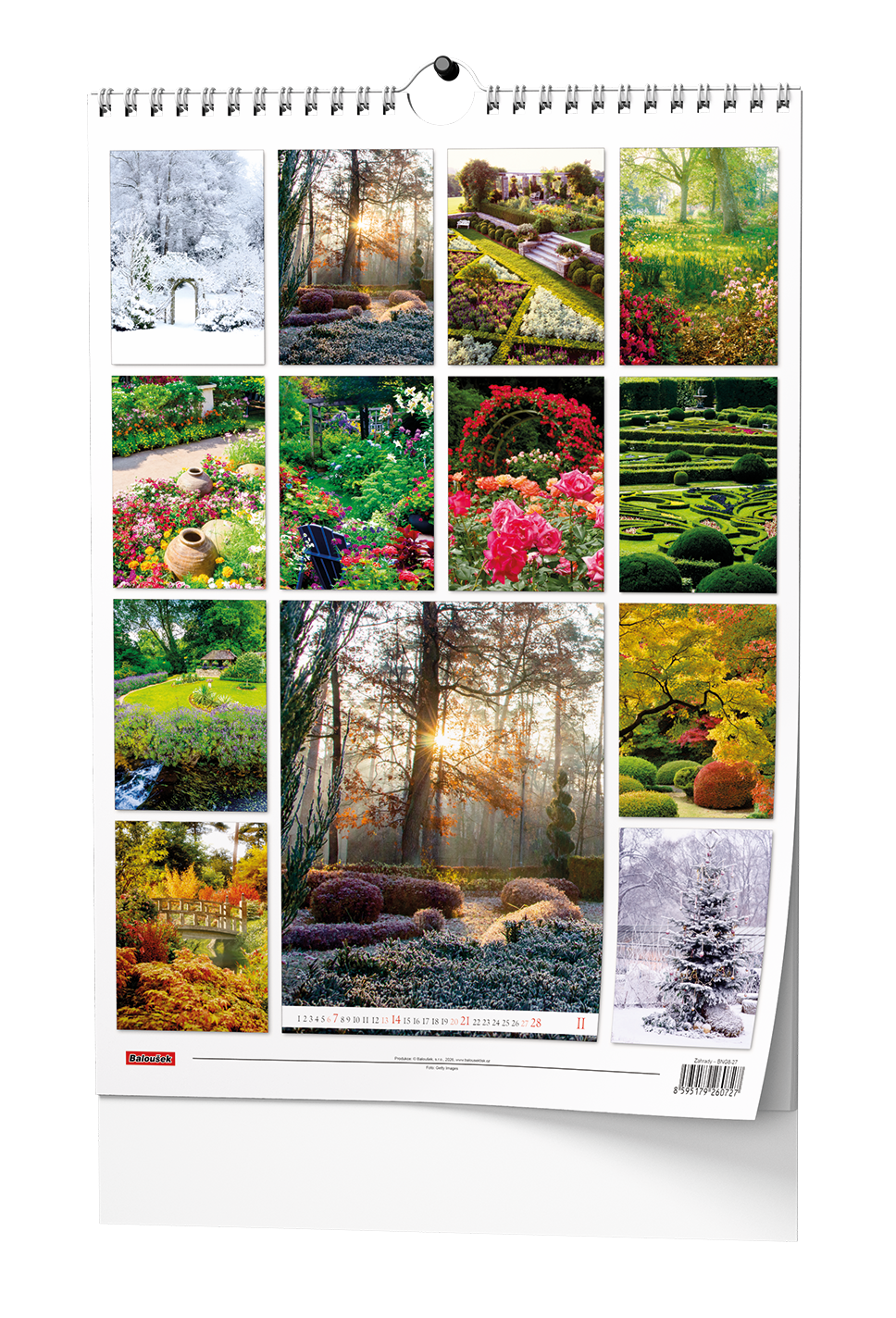 Nástěnný kalendář s obrázky nejkrásnějších zahrad.
