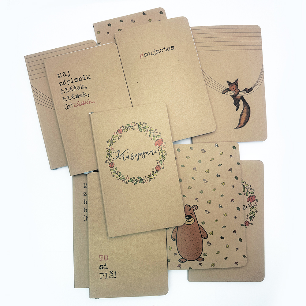 Mix kraftových notesů A5 s linkovaným, tečkovaným nebo prázdným blokem. Motivy jsou namixovány náhodně bez možnosti výběru. Po objednání jednoho kusu Vám dorazí náhodný výběr jednoho motivu.