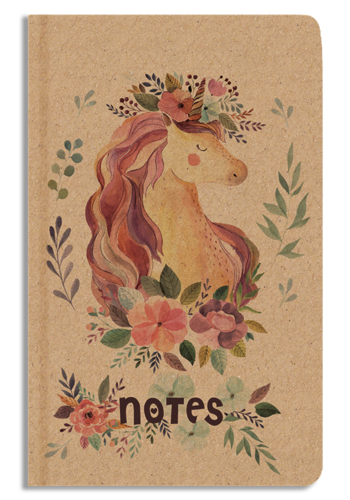 Notes A5 s krásnou grafikou Jednorožce na kraftové obálce.