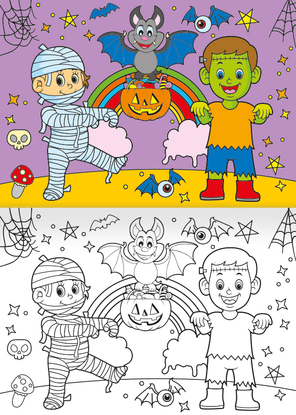 Omalovánka s motivy Halloweenu pro všechny kluky i holky.
