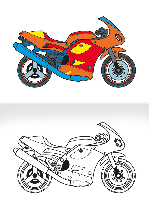 Omalovánky s motivy motorek pro všechny kluky i holky. Dětské omalovánky A5 jsou perfektní dárek pro děti, které chcete zabavit nejen v deštivých dnech. Omalovánky podporují zdravý vývoj dětí, protože zlepšují rozvoj motoriky ruky, učí je trpělivosti a koncentraci, dětí se učí barvy a rozvíjí svou vlastní fantazii.