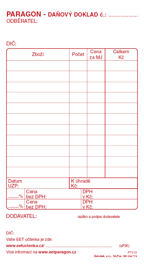 Dotaz na zboží: Paragon - daňový doklad - EET (PT010)