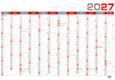 Nástěnný roční kalendář B1 - červený