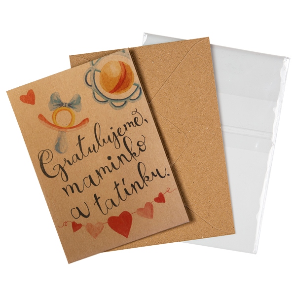 Přání je vyrobeno z recyklovaných materiálů. Kraft je odolný a uchovává si přirozenou barvu a texturu, která nám je velmi sympatická. Zároveň výroba tohoto papíru není nijak složitá, a tak minimálně zatěžuje životní prostředí.