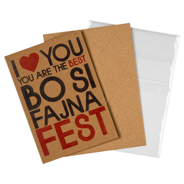Přání je vyrobeno z recyklovaných materiálů. Kraft je odolný a uchovává si přirozenou barvu a texturu, která nám je velmi sympatická. Zároveň výroba tohoto papíru není nijak složitá, a tak minimálně zatěžuje životní prostředí.