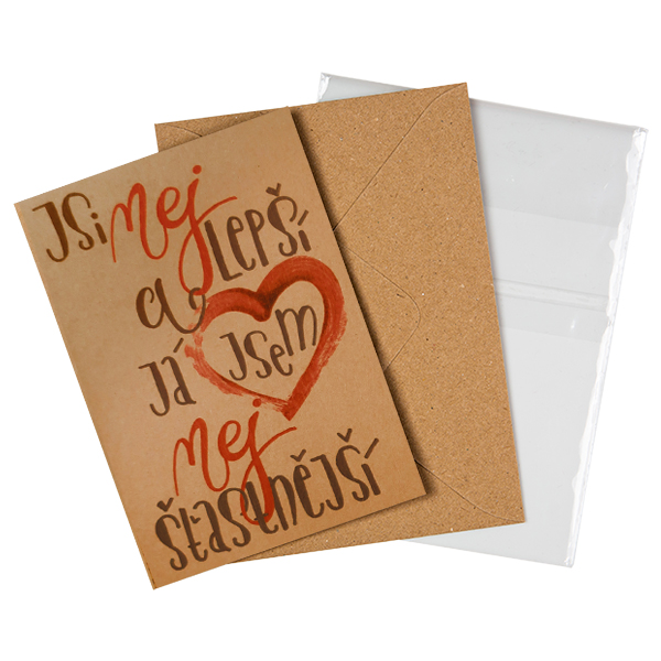 Přání je vyrobeno z recyklovaných materiálů. Kraft je odolný a uchovává si přirozenou barvu a texturu, která nám je velmi sympatická. Zároveň výroba tohoto papíru není nijak složitá, a tak minimálně zatěžuje životní prostředí.