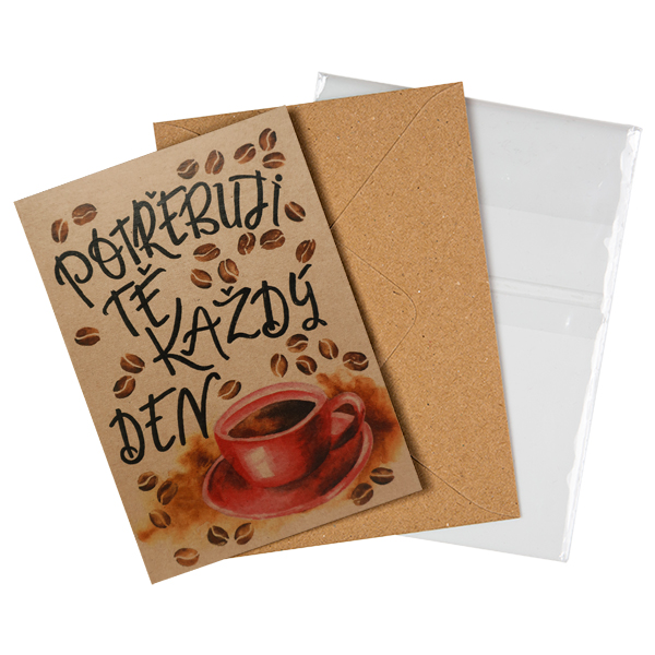 Přáníčko BeBechy – recyklovaný papír - Káva