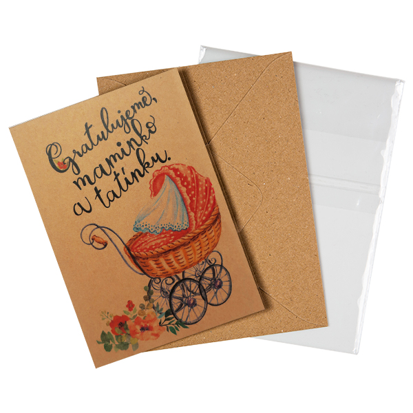 Přáníčko BeBechy – recyklovaný papír – Kočárek